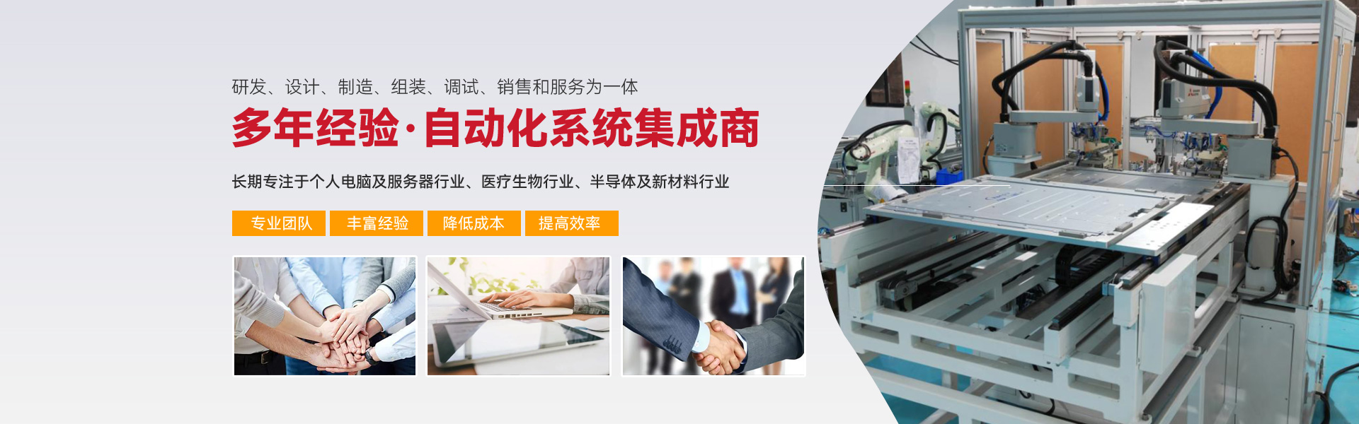 ※ 長期專注亍個人電腦及服務器行業(yè)、醫(yī)療生物行業(yè)、半導體及新材料行業(yè)三大行業(yè)的自動化組裝、檢測設備的生產與開發(fā)。